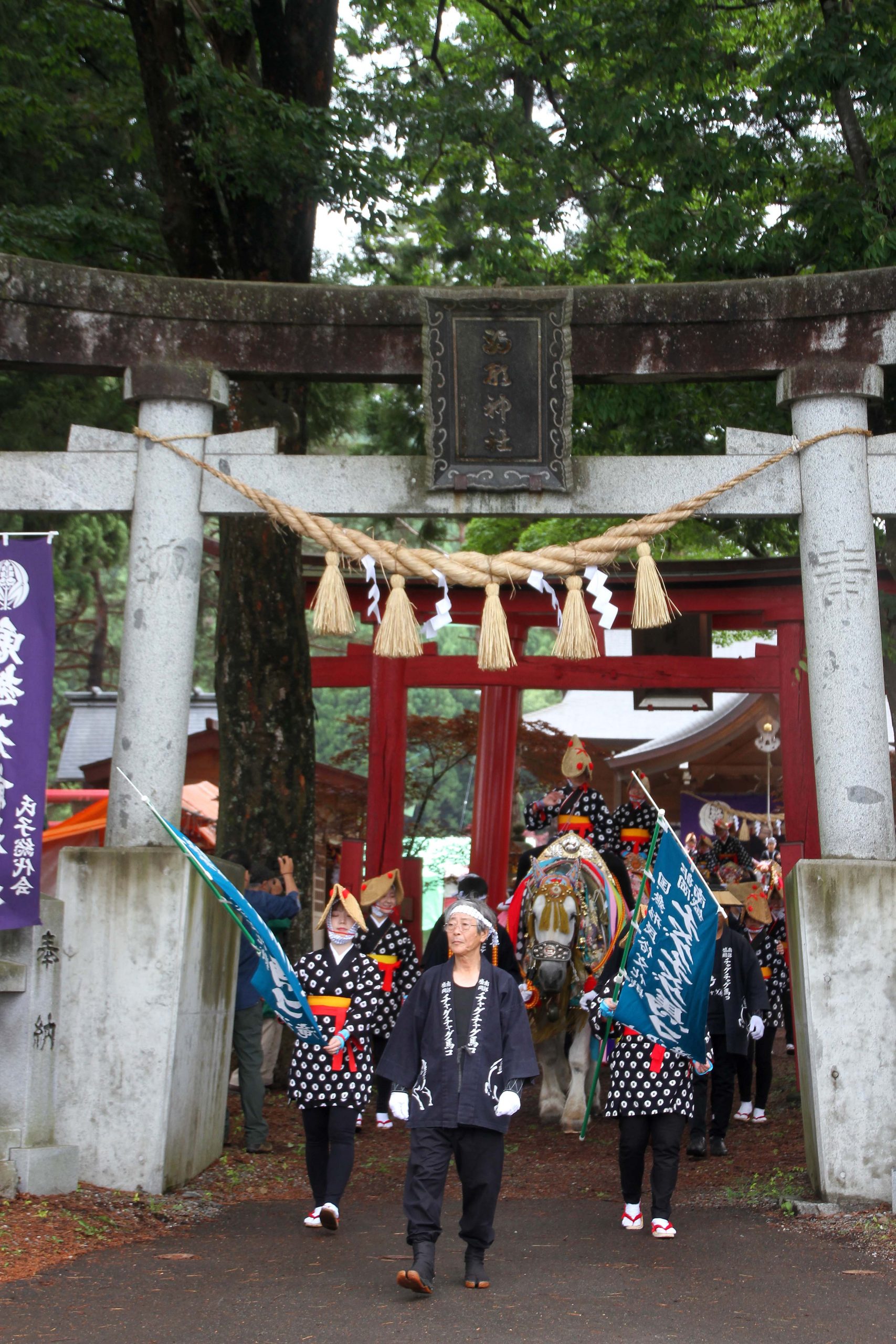 お参りを済ませた馬たちが続々と神社から出てくる。