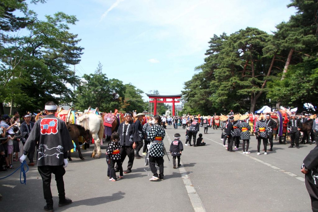 本番当日、早朝8時。鬼越蒼前神社の境内は、多くの馬、関係者、観光客であふれかえっていた。前日のリハーサルと違い、緊張感が漂っている。一行はここから出発し、盛岡市・盛岡八幡宮までの道のりを約5時間をかけてパレードする。
