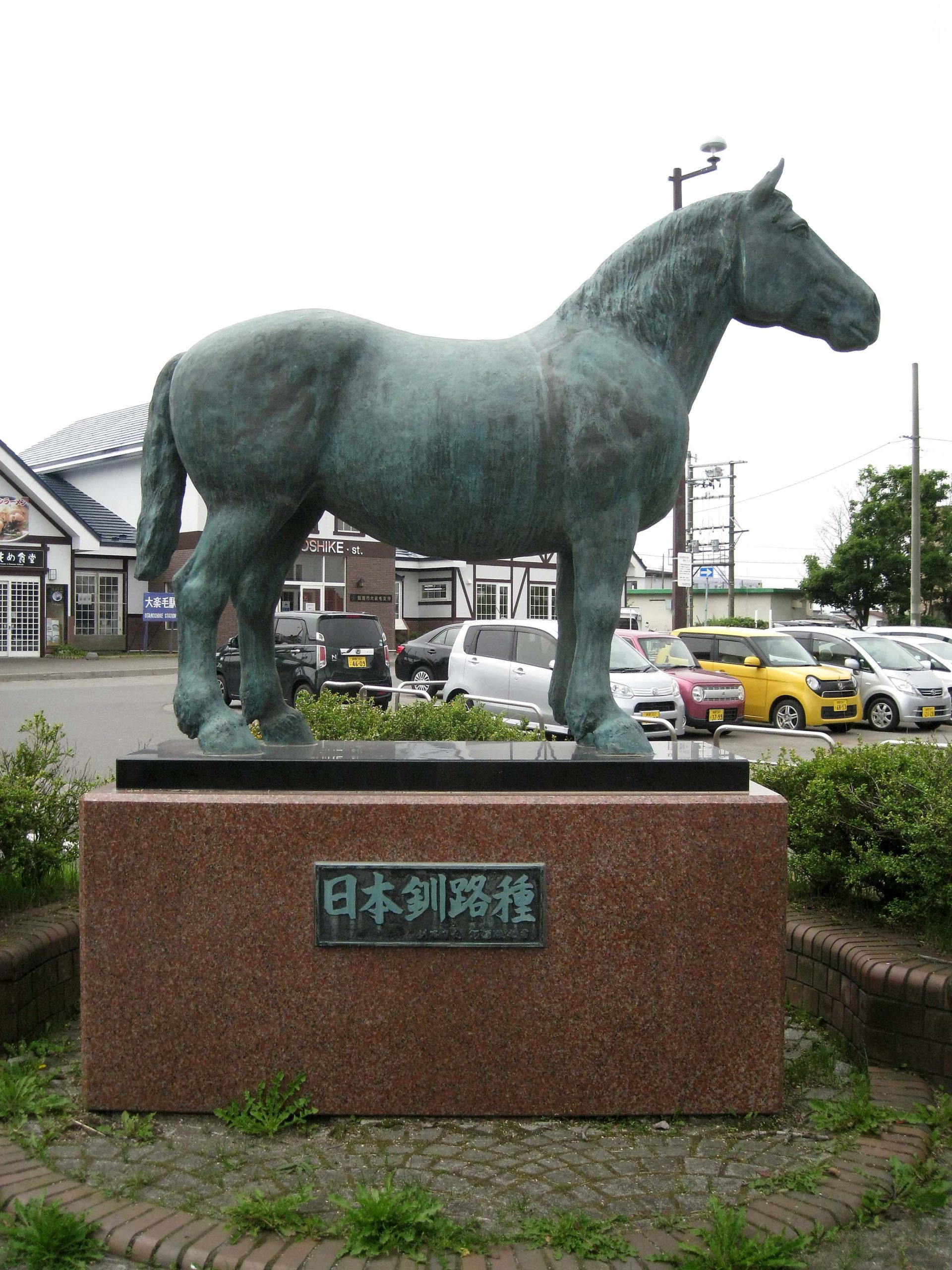 明治時代に初めてつくられた日本産の重種馬「日本釧路種」の銅像