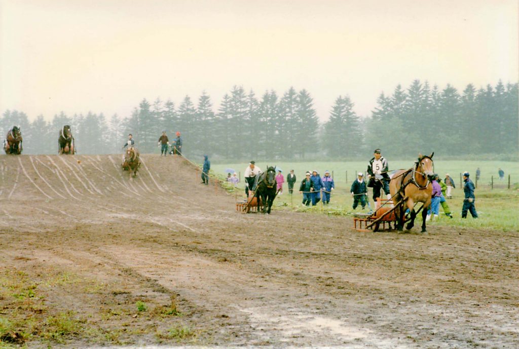 今は閉鎖された中標津の南中競馬場での草ばんばの様子。