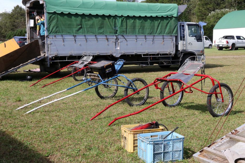 繋駕レースで使うカート。特注品だ。