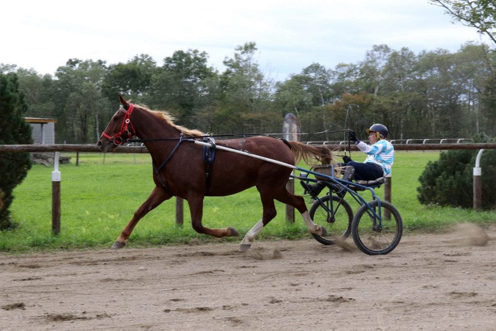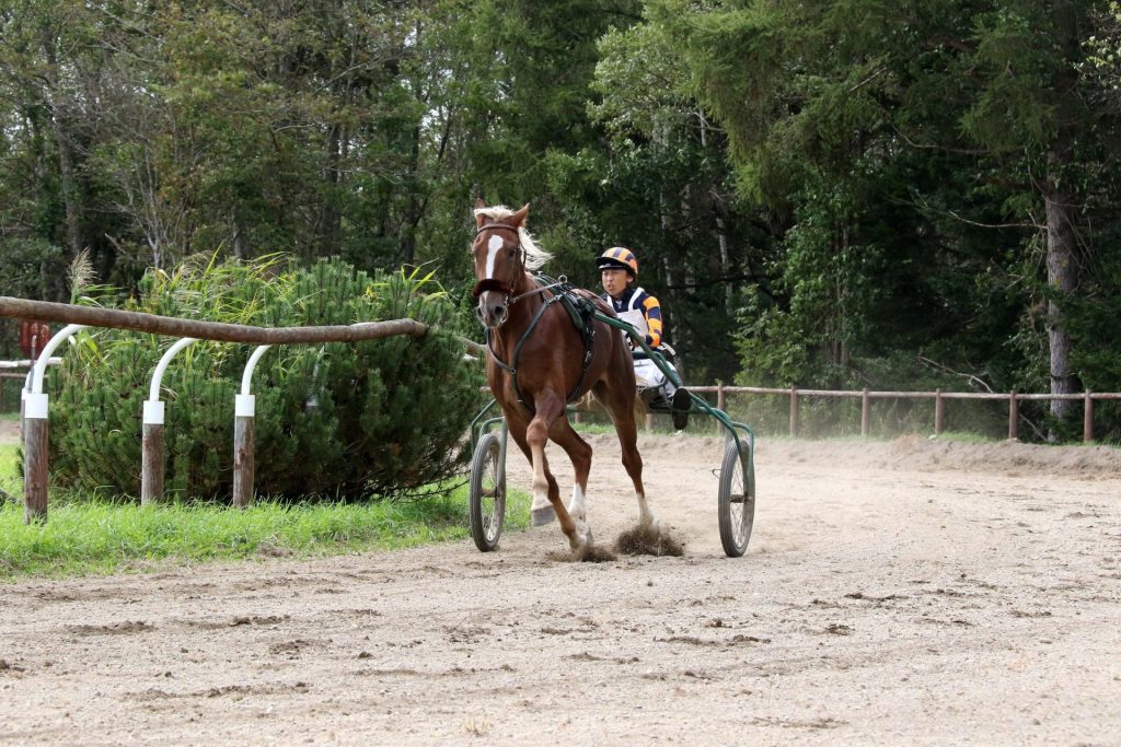 ドライバーは繋駕車に乗って馬を操作する。トロッターといえどもちろんキャンターもギャロップもできるので、制御が必要。速歩以外の走り方をすれば、即失格だ。独特のテクニックがいる。地元でもドライバーになれる人は数少ない。