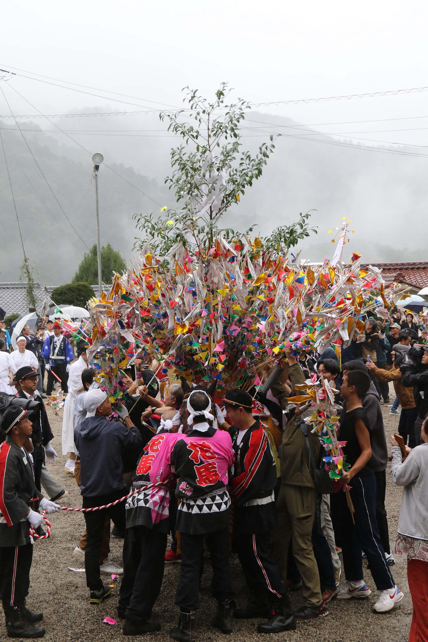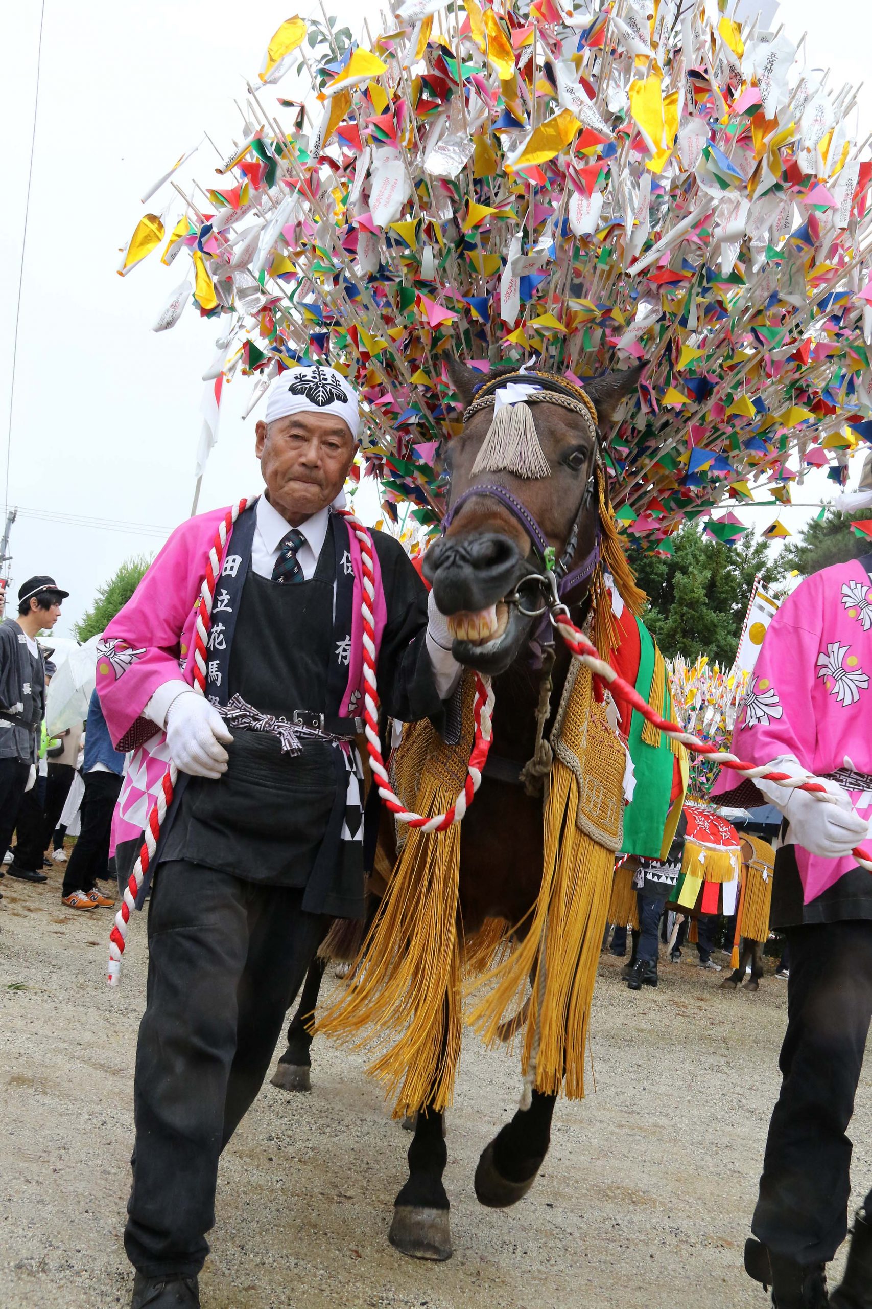 人々の目的は「花」。台に差してあるだけなので簡単に抜ける。「花取り」と呼ばれる儀式で祭りは最高潮に達する。とはいえ、「花」が馬からすべて抜き取られるまで5分とかからない。あっという間の出来事だ。